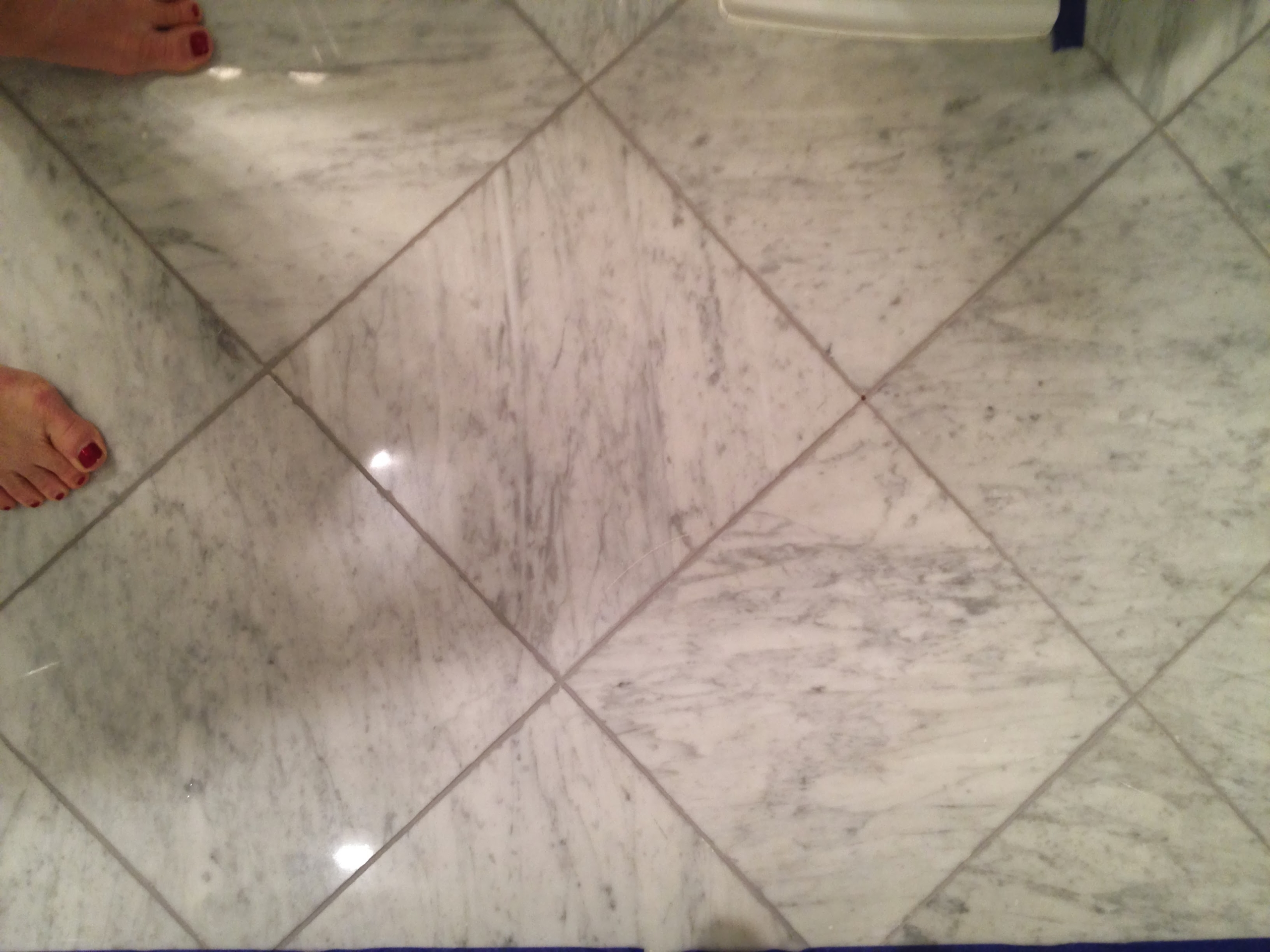 Just a few years ago we remodeled an old bathroom. I splurged on Cararra marble for the floor.