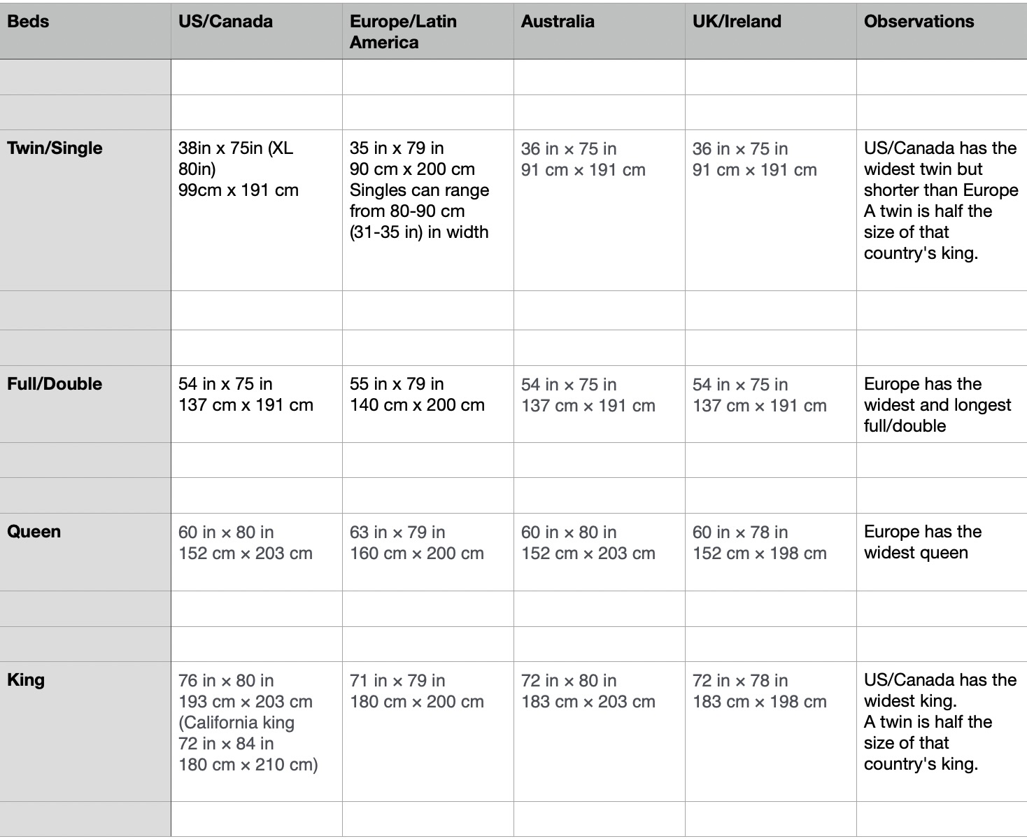 In Europe, a “double” bed is the term for any bed that holds 2 people and can be a double, queen, or a king.